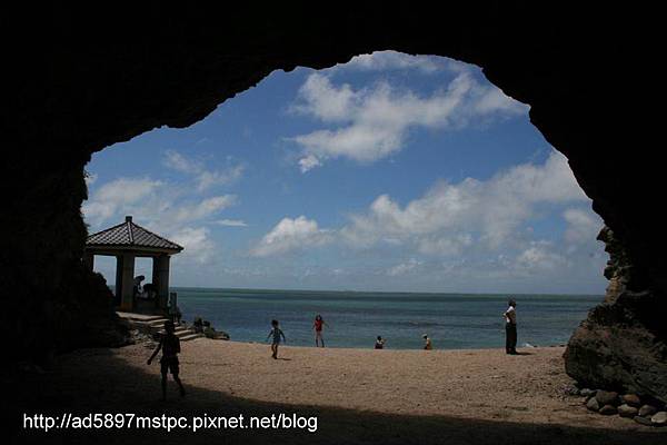 走入洞內,於幽暗中向外眺望,可見一輪生動的碧海藍天景像,予人別有洞天,欣見世外桃源之感。